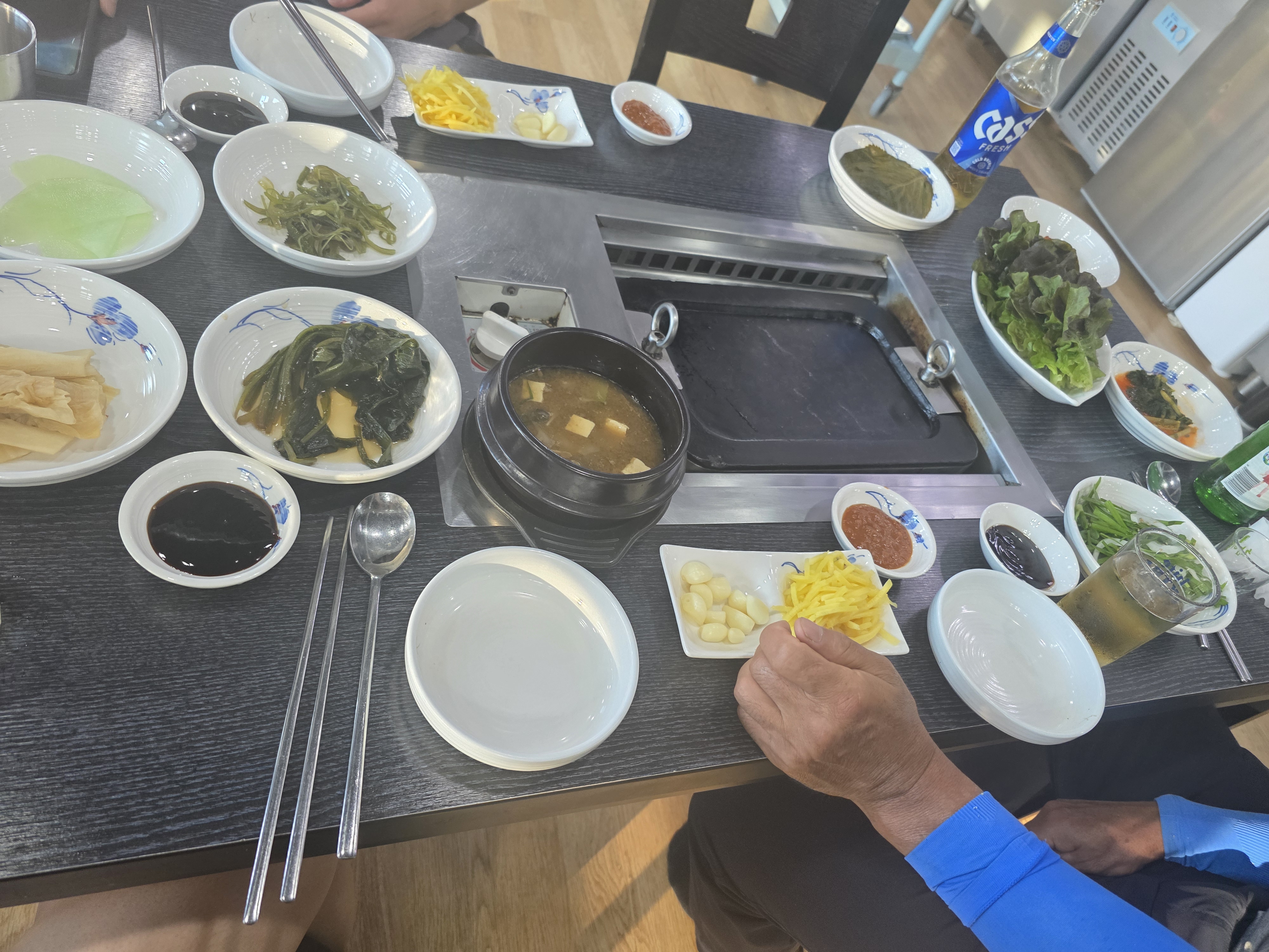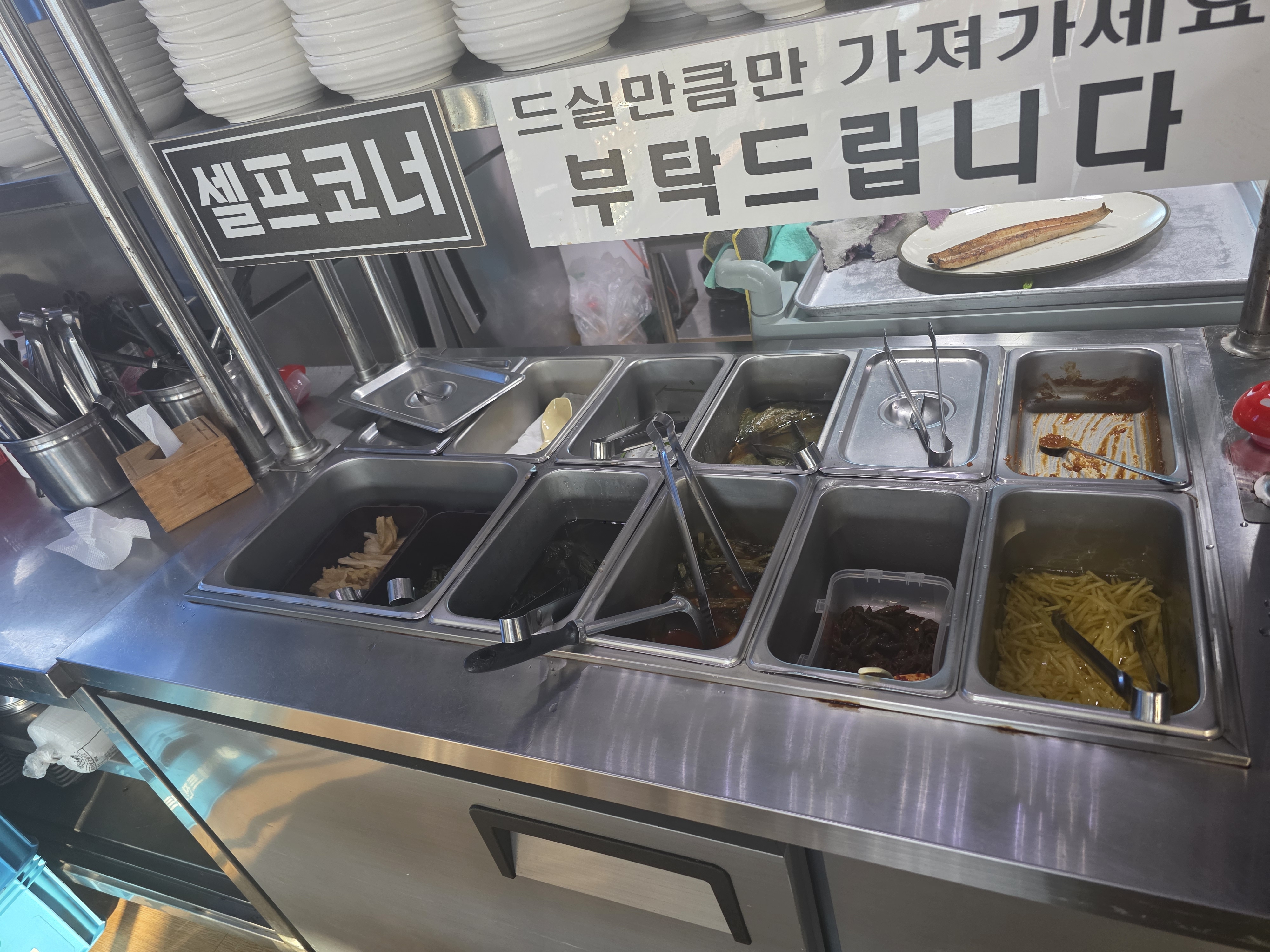 - 셀프반찬바: 명이나물, 깻잎장아찌, 묵은지, 부추무침, 상추, 마늘·생강 등 반찬 셀프 바 운영. 부족한 반찬은 요청 시 보충 가능