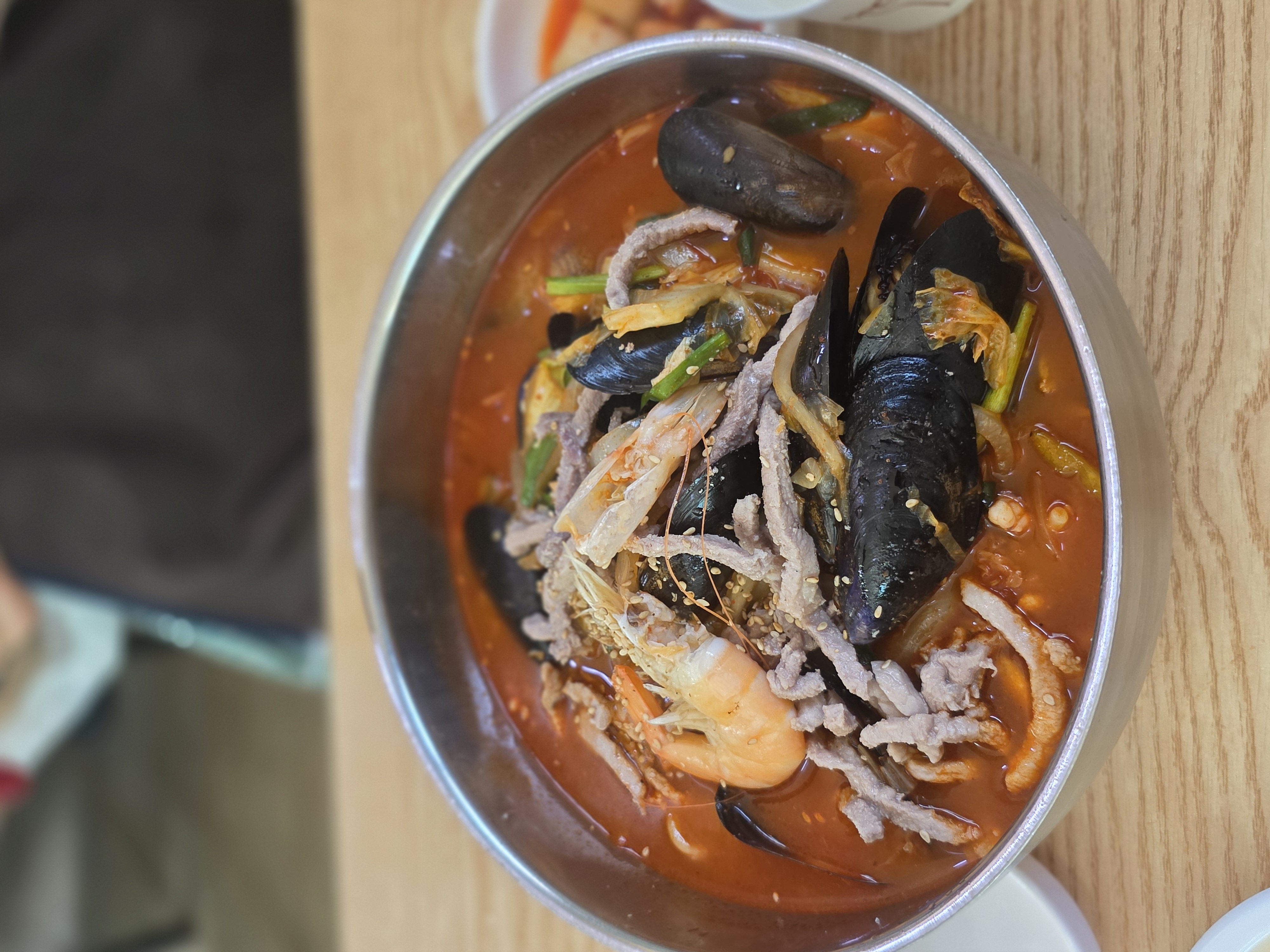 국물 한 숟갈을 떠먹자, 홍합과 오징어, 새우에서 우러나온 해물 향과 고기에서 나온 구수한 맛이 조화를 이뤘습니다. 야채는 아삭하게 살아 있었고, 면은 물짜장과 같은 탄력 있는 생면이라 국물과 잘 어울렸습니다. 매운맛을 즐기는 사람이라면 테이블 위 고추기름을 추가해 먹으면 풍미가 한층 깊어집니다.