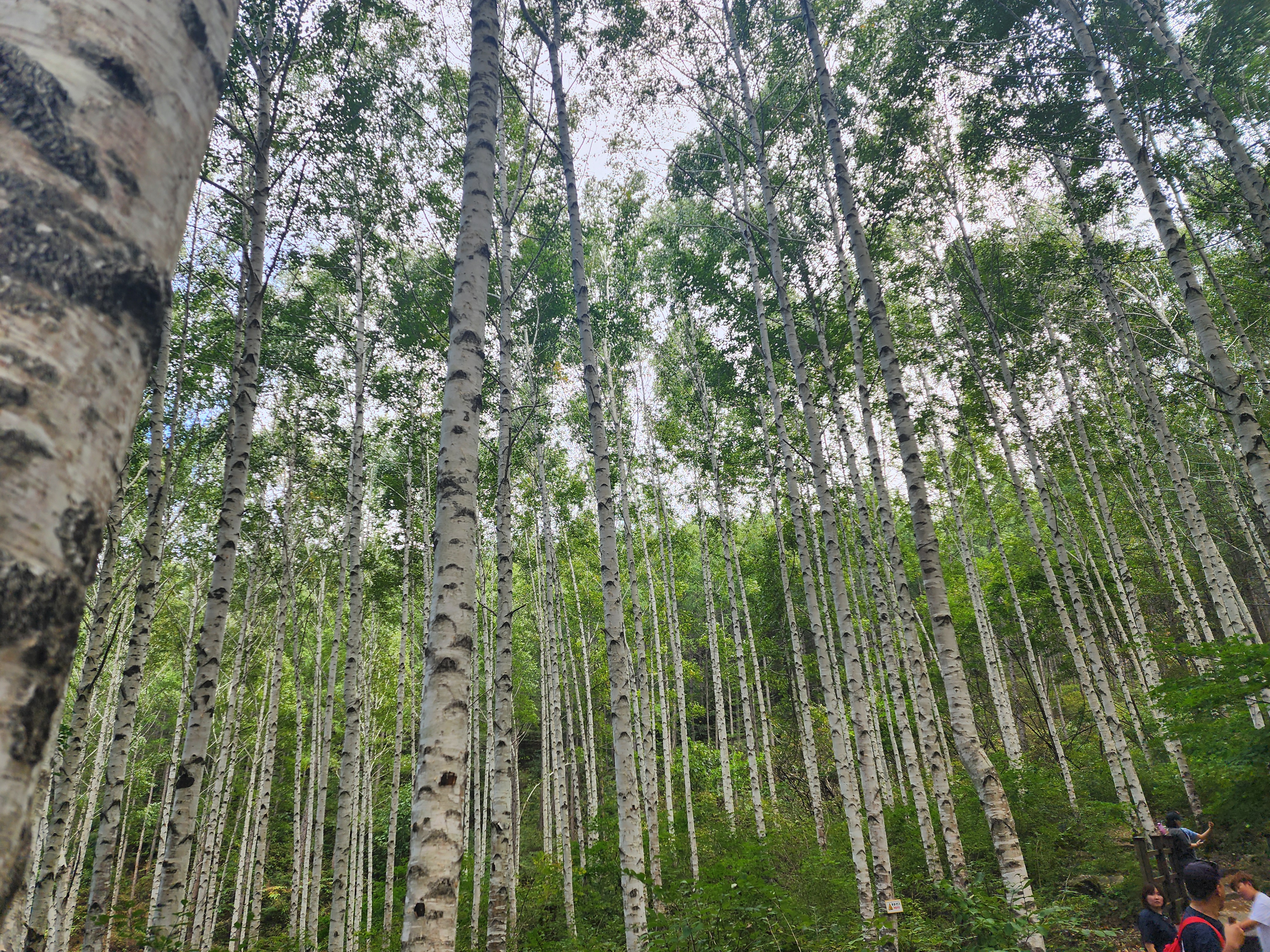 인제 자작나무숲의 나무들은 대부분 수령 30년 내외로, 고르게 자라난 모습이 인상적입니다. 나무껍질에 검은 무늬가 간간이 나타나는데, 이는 자작나무의 자연스러운 무늬로 마치 예술 작품 같은 느낌을 줍니다.