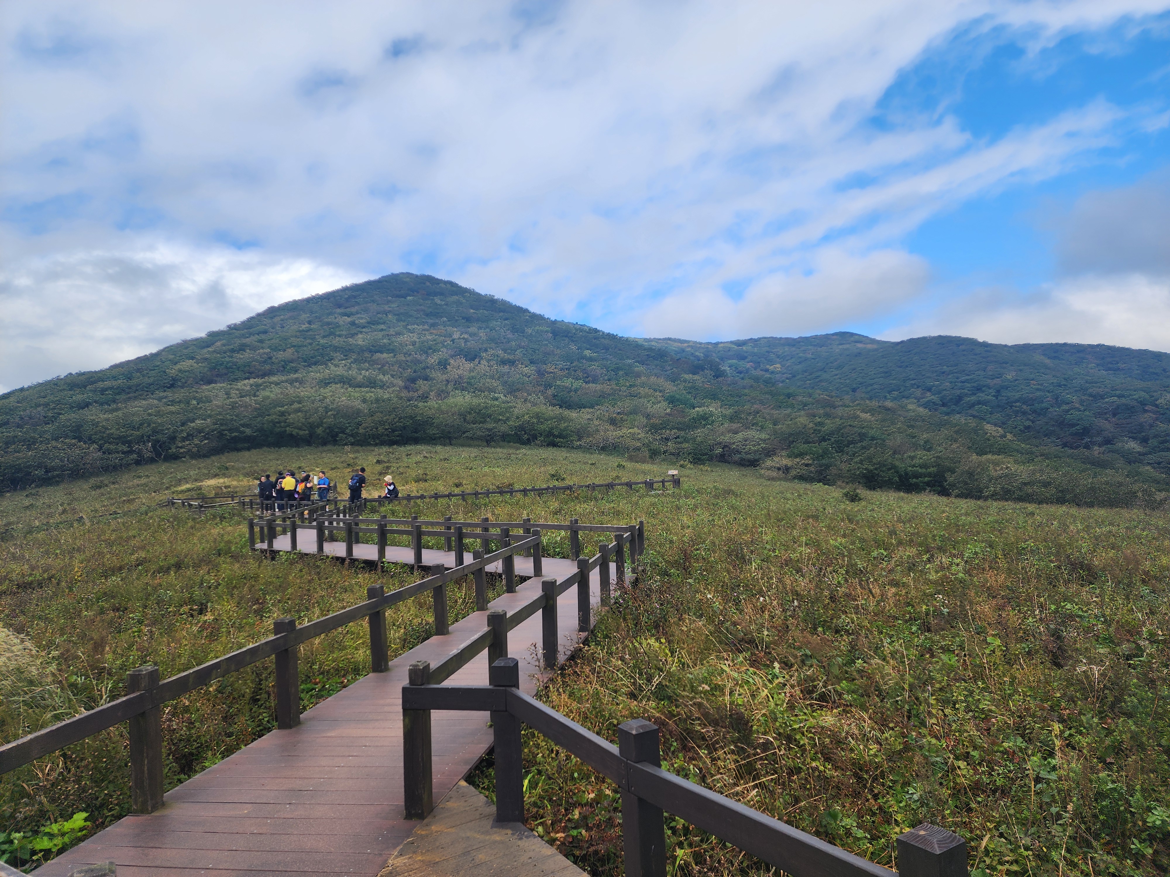 코스는 비교적 완만한 편이지만 초반부의 숲길에서는 경사가 있는 구간이 있어 초보자라면 천천히 걸으며 자연을 감상하는 여유가 필요합니다. 중턱에 오르면 탁 트인 초원이 나타나고, 정상부에서는 산등성이를 따라 이어지는 능선과 강원도의 깊은 산세가 한눈에 펼쳐집니다.